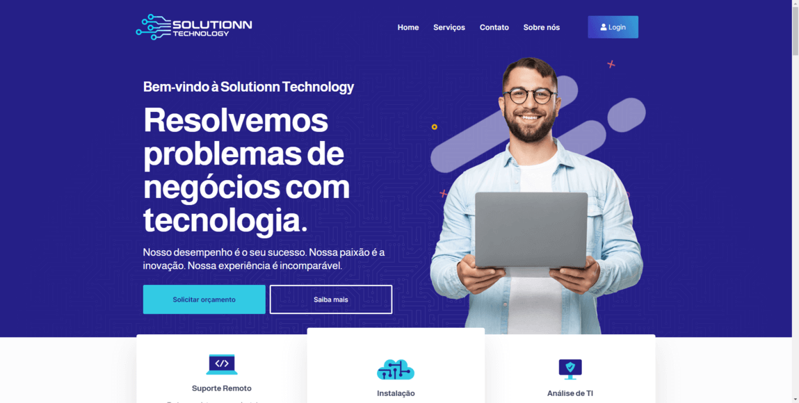 Projeto desenvolvido para a Solutionn Technology, empresa especializada em Lorem Ipsum is simply dummy text of the printing and typesetting industry.